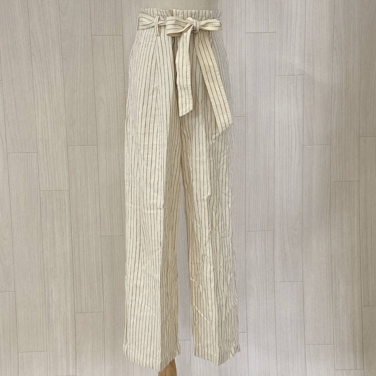 - YZ1580 UNIQLO レディース ボトムス ロング丈 薄手 ウエストゴム ベルト ファスナー・ホック S ストライプ 綿 麻 シンプル おしゃれ 春秋