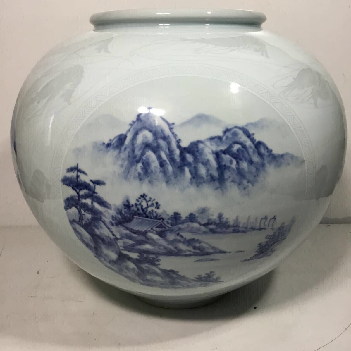 > 落款 銘あり 中国 中國 壺 海老 古玩 えび 山水 ツボ 花瓶 染付 青花 骨董 陶器 青磁 白磁 骨董品 壷 透かし ( 佐藤走破 TS11Z