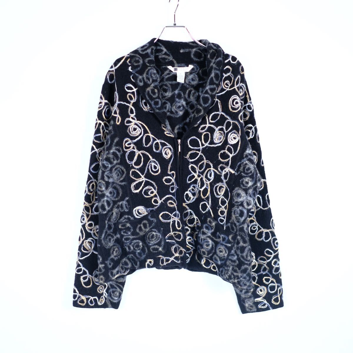 - 1990s ビンテージ ウール刺繍ジャケット 総柄 レアデザイン アート 古着屋 ヴィンテージ ハンドメイド レア