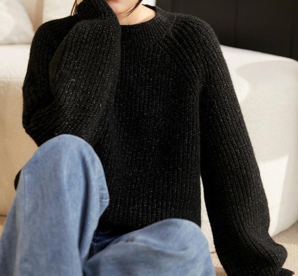 - 秋冬推薦/オシャレ ニットセーター 大人 ルーズニットトップス プルオーバー 高級感 暖か防寒 きれいめ カットソー 長袖 セーター/ブラック