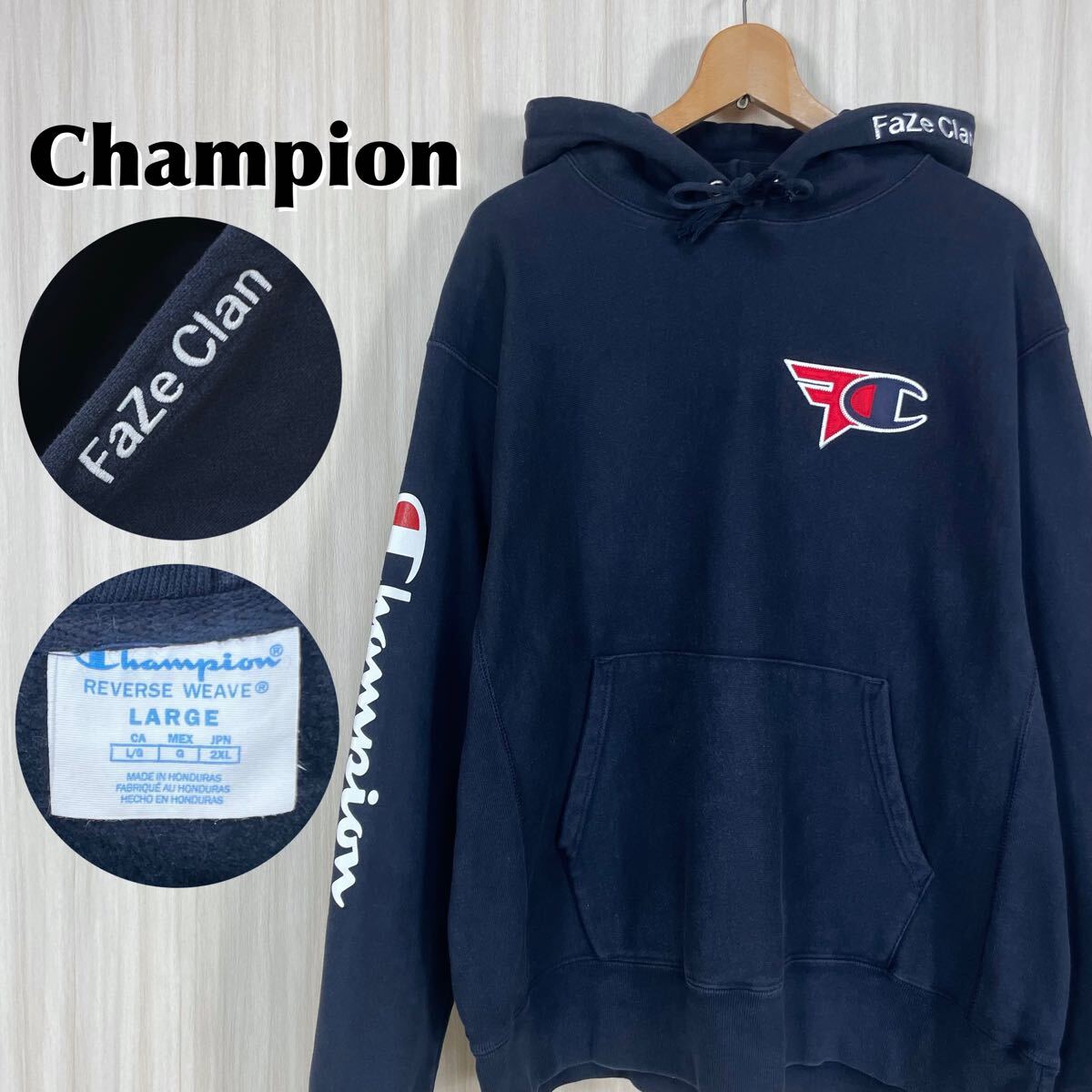 > ☆入手困難☆チャンピオン リバースウィーブ eスポーツチーム FaZe Clan フェイズ クラン 裏起毛 プルオーバーパーカー L ネイビー 古着