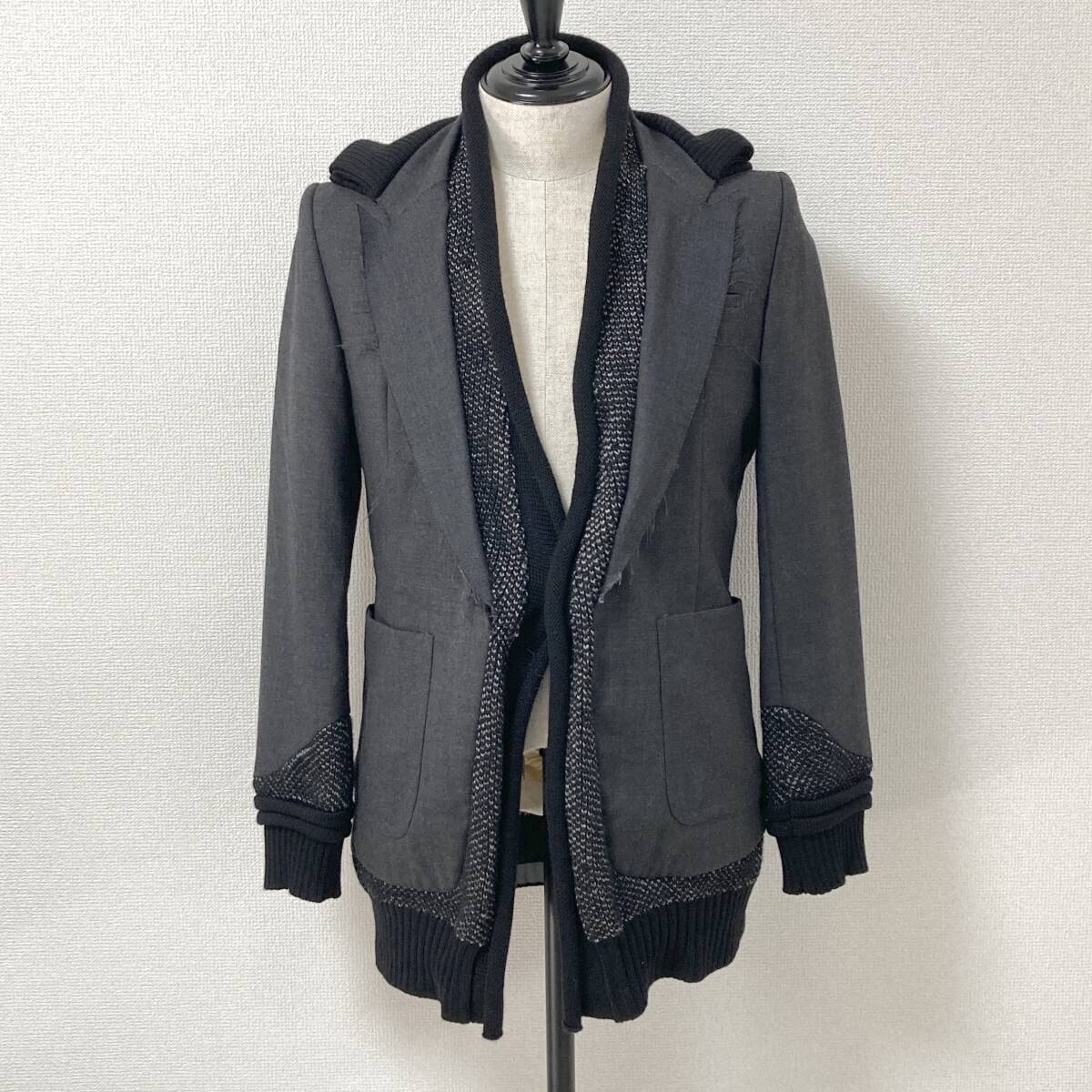 > 2009AW UNDERCOVER ear muff期 切りっぱなし加工 ニット カーディガン ドッキング ジャケット 2サイズ アンダーカバー archive 4040278