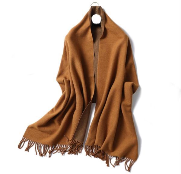 - 秋冬推薦 / 大判 上質 上品 エレガント オシャレ 通勤 防寒 カシミヤ リバーシブル仕様 ストール マフラー / ブラウン