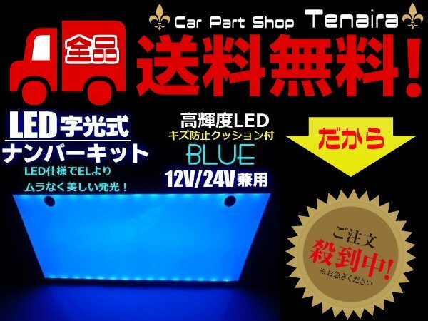 - 12V 24V 兼用 LED 字光 ナンバー プレート キット 1枚 青 ブルー イグナイター 付 薄型 全面発光 ライセンス プレート 送料無料/4