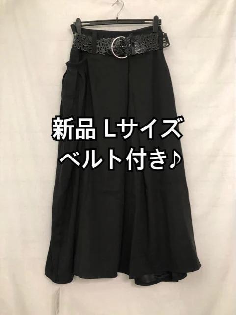 - 新品☆L♪黒系♪ベルト付♪お洒落ロングスカート☆p170