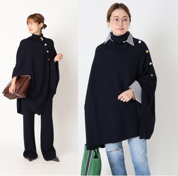 > 美品 91,300円 Deuxieme Classe ドゥーズィエムクラス エクストラファインメリノ refined マント ポンチョコート ネイビー 金ボタン