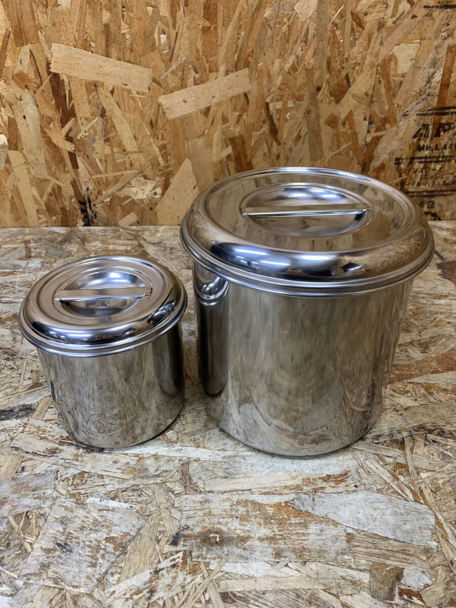 - a(6818) 業務用 ステンレスポット 丸型 キッチンポット 調味料 調理器具 18cm 12cm 2個セット 蓋付き 目盛り無し
