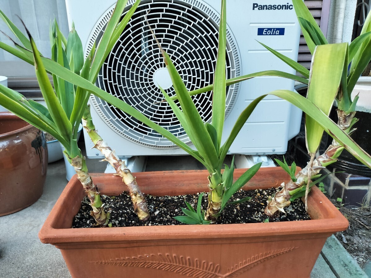 - 整理特価 発根済み 耐寒性 ユッカ エレファンティペス 挿し木 4本セット 青年の木 Yucca elephantipes 子株多数 曲がりユッカ