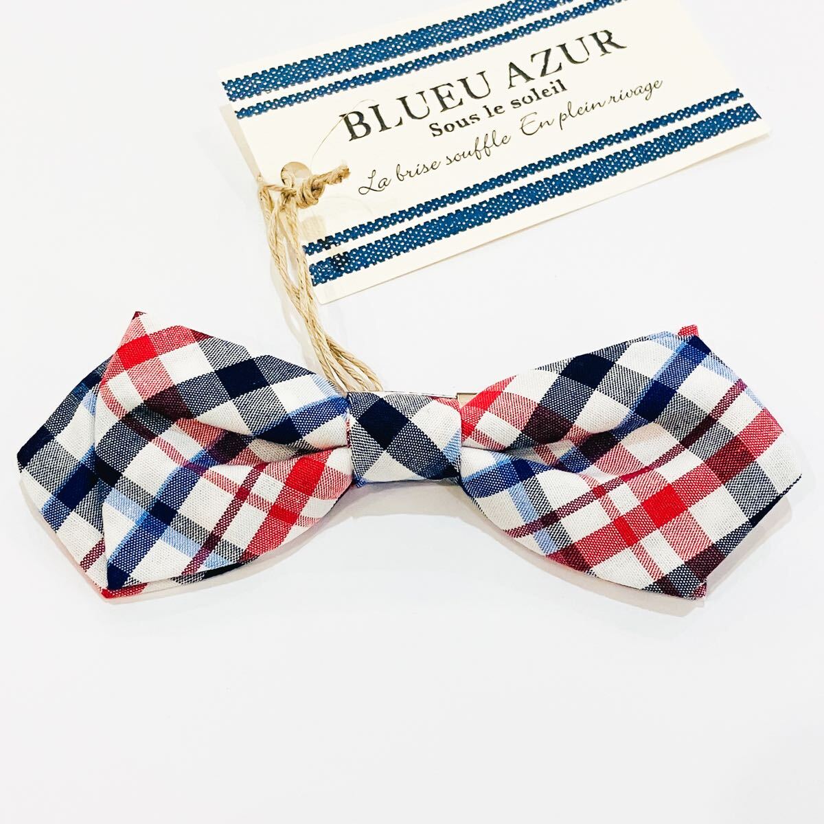 - 【新品未使用】ブルーアズール BLUEU AZUR キッズ 蝶ネクタイ タイ 安全ピン 結婚式 発表会 入学式 卒業式 チェック 男の子 スーツ ②