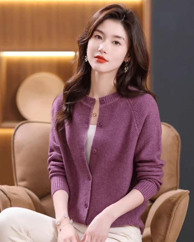 - OHJ656★新作秋冬新品 セーター ニット カーディガン 気質良い トップス キレイめ オシャレ ニットセーター 大人 お洒落 暖かい 紫