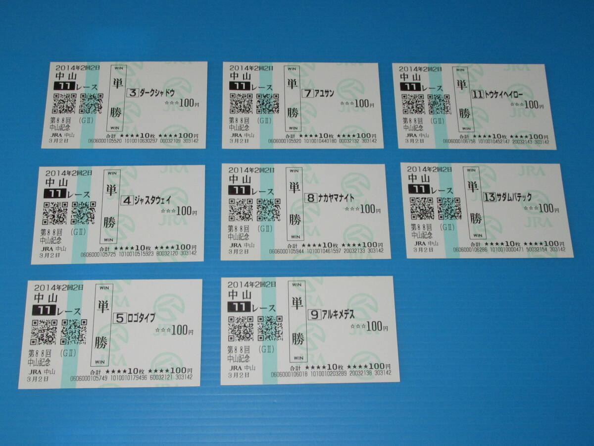 > 匿名送料無料 現地的中単勝馬券他8枚 ★ジャスタウェイ 第88回 中山記念 GⅡ 2014 JRA中山 即決!ロゴタイプ/アユサン/サダムパテック