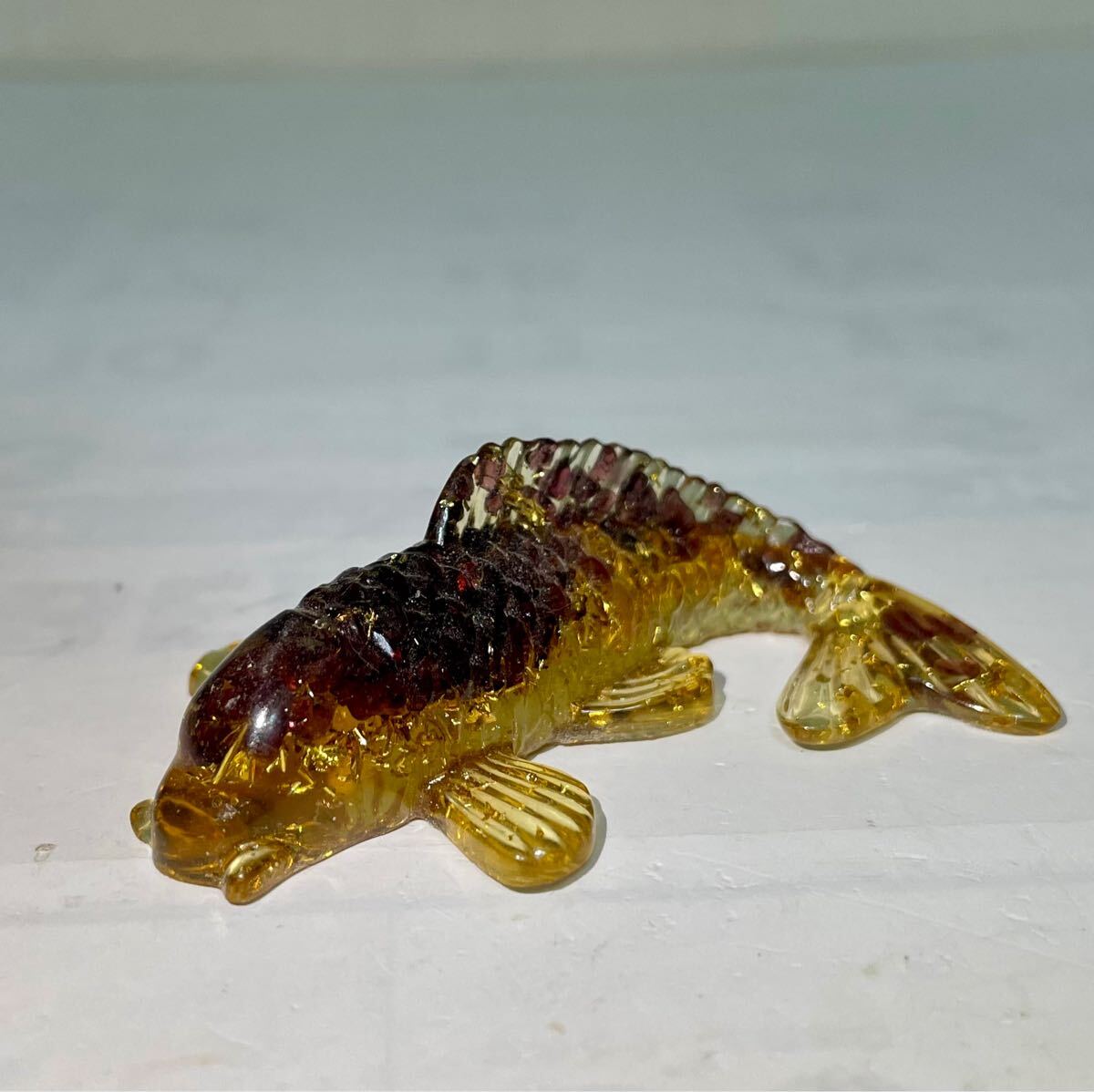 - 鯉のオルゴナイト クリスタル 水晶 天然石 置物 魚のフィギュア フィッシュ 雑貨 パワーストーン 幸運 ガーネット 柘榴石 レッド