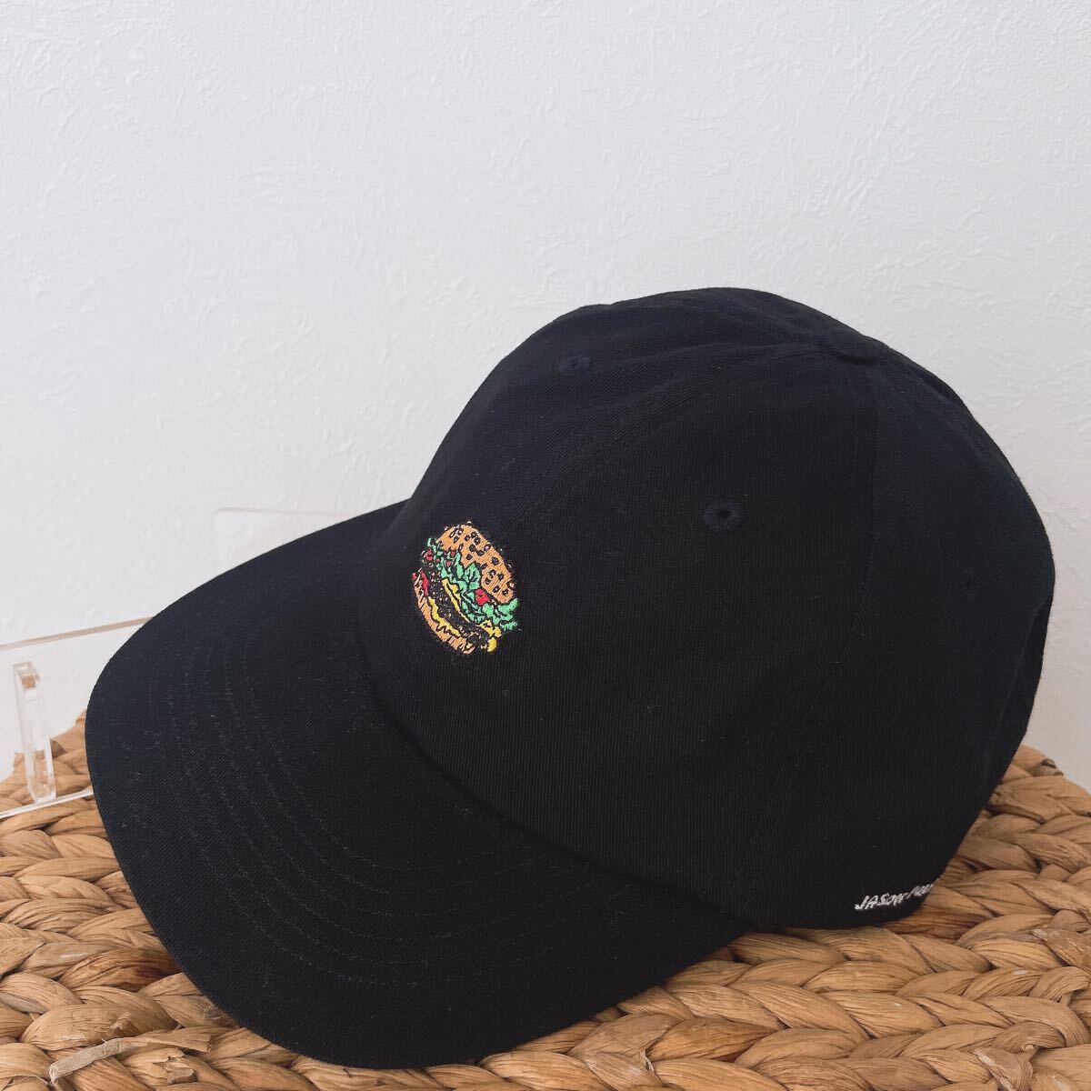 > おしゃれJASONPOLAN×UNIQLOジェイソンポラン ユニクロ野球帽ハンバーガー刺繍キャップ黒ブラック白ホワイト ベースボールキャップ帽子