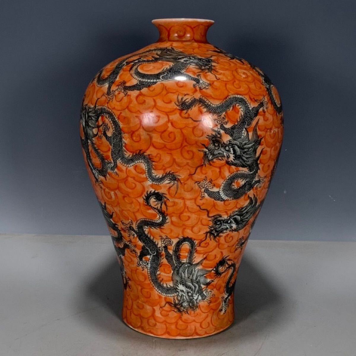 - 【伝世蔵品】中国古美術 古玩 唐物旧蔵 大清開運窓粉彩 墨九頭龍紋瓶 康熙御製極細工 風水置物 古賞物 開運龍紋瓶 中国骨董品
