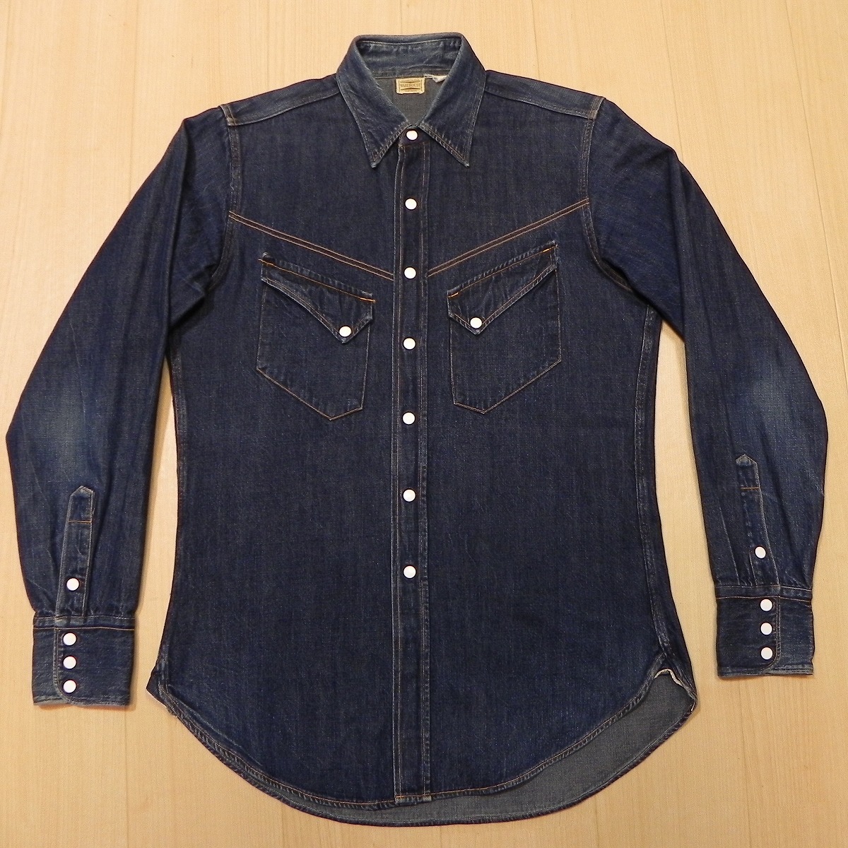 > WAREHOUSE デニム ウエスタンシャツ 耳付き マチ セルビッジ ウエアハウス インディゴ ビンテージ 復刻 レプリカ 古着 ★a