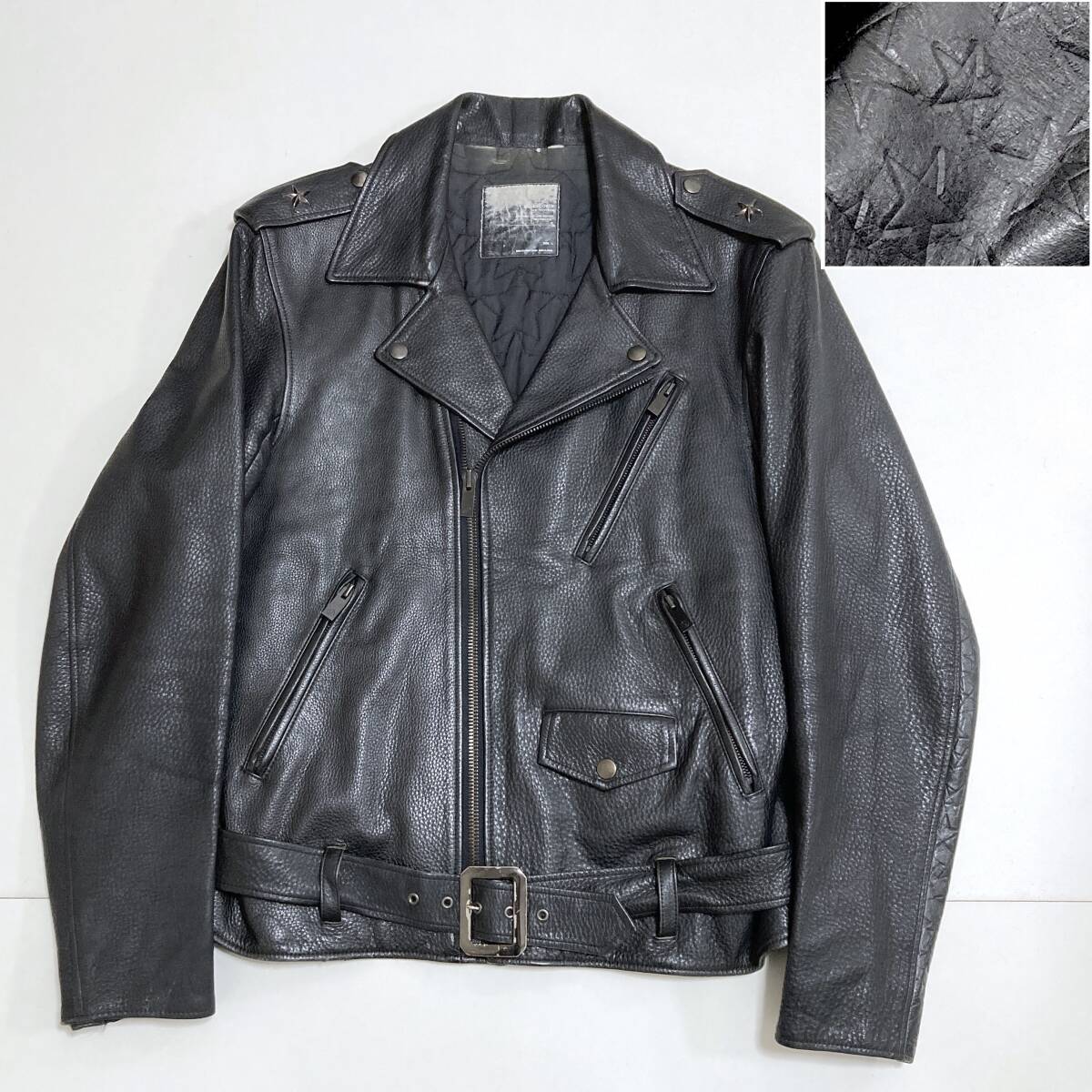 > 星 型押し 2001AW UNDERCOVER メルティングポット レザー ダブル ライダース Lサイズ アンダーカバー ジャケット VINTAGE archive 4110145