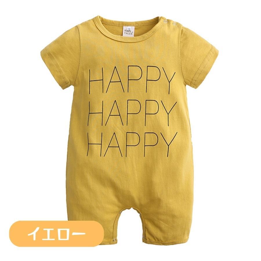> 半袖 5分丈 ロンパース やわらか素材 デザイン柄 韓国子供服 おしゃれ 乳幼児 キッズ ベビー服 (66, イエロー)