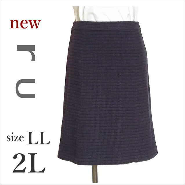 - 未使用〔ru〕紺ラメ入り織り込みセミフレアスカート アールユー 膝丈 レディース 通勤 着回し LL ◎送料込み