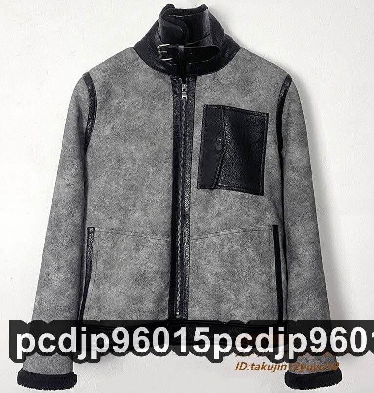 > 最高級*定価16万 ムートンコート 厚手フライトジャケット厚手 ファーコート メンズ ブルゾン 超防寒 ジャンバー バイクウェア グレーM-5XL