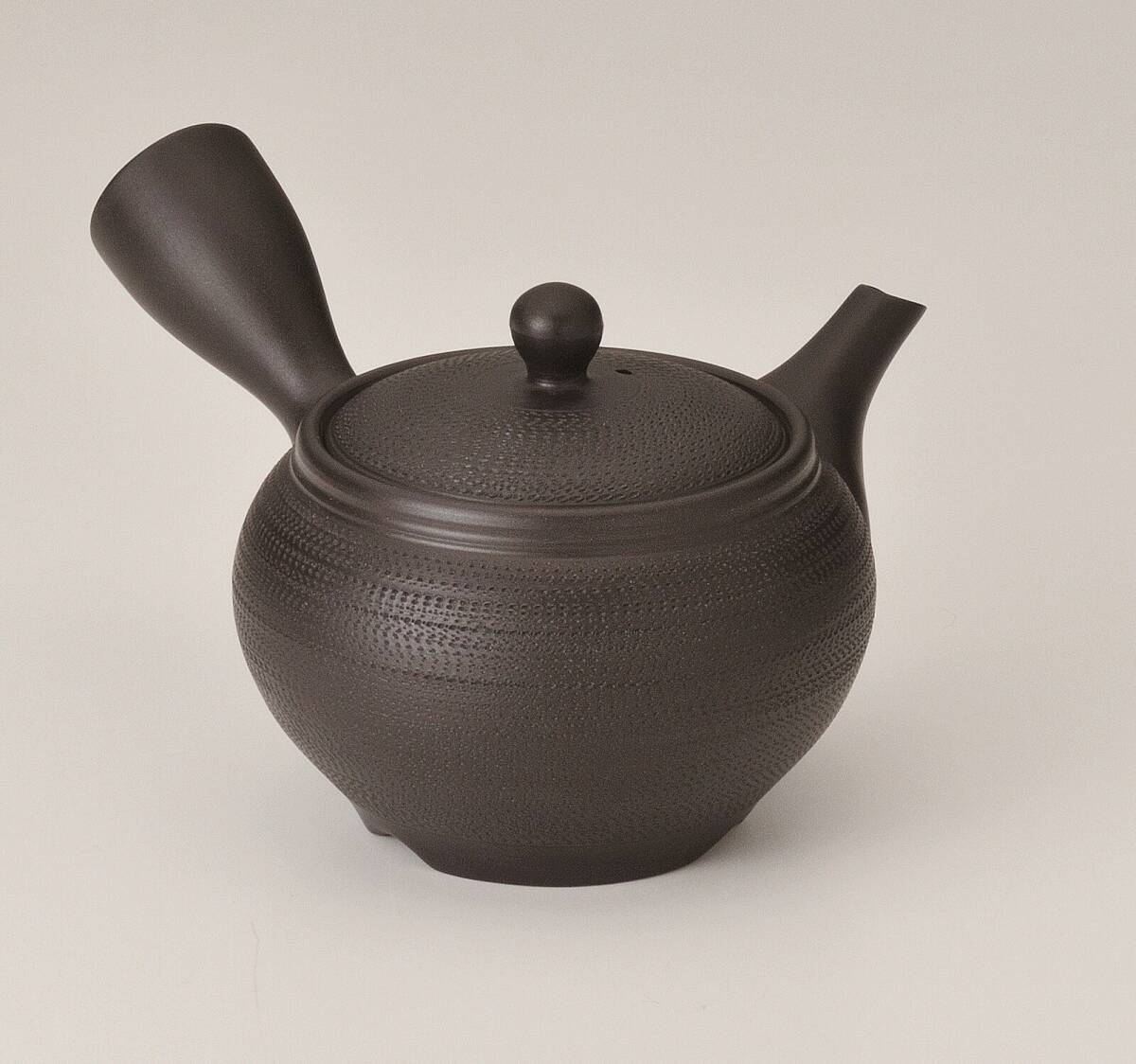 - 常滑焼! 陶聖 ☆黒つぼ型ルレット急須☆ Y215 新品 茶器 お茶 煎茶 深蒸し ほうじ茶 ポット ギフト
