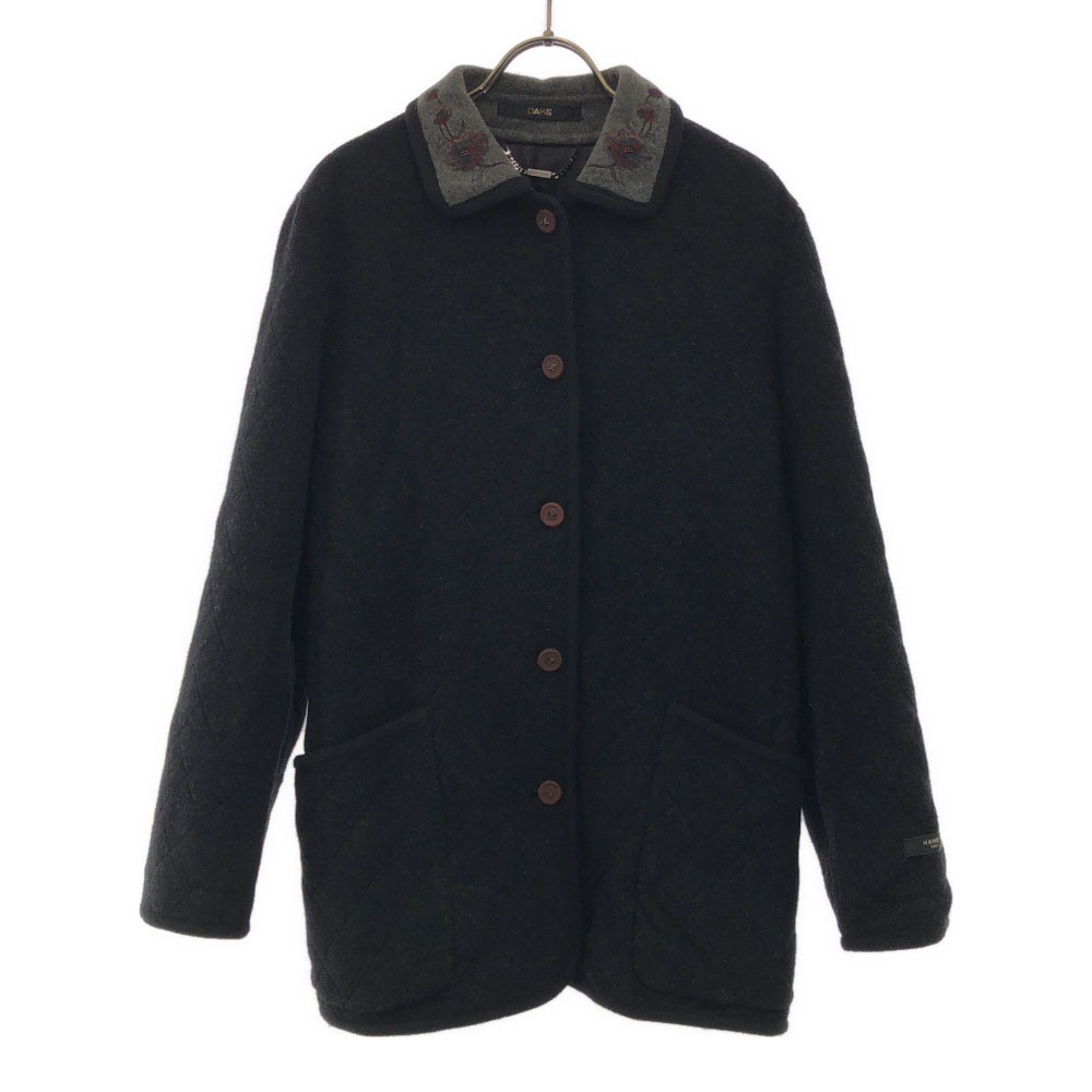 ダックス ダイヤ柄 花柄刺繍 ジャケット LG ブラック DAKS 一部裏地付き レディース