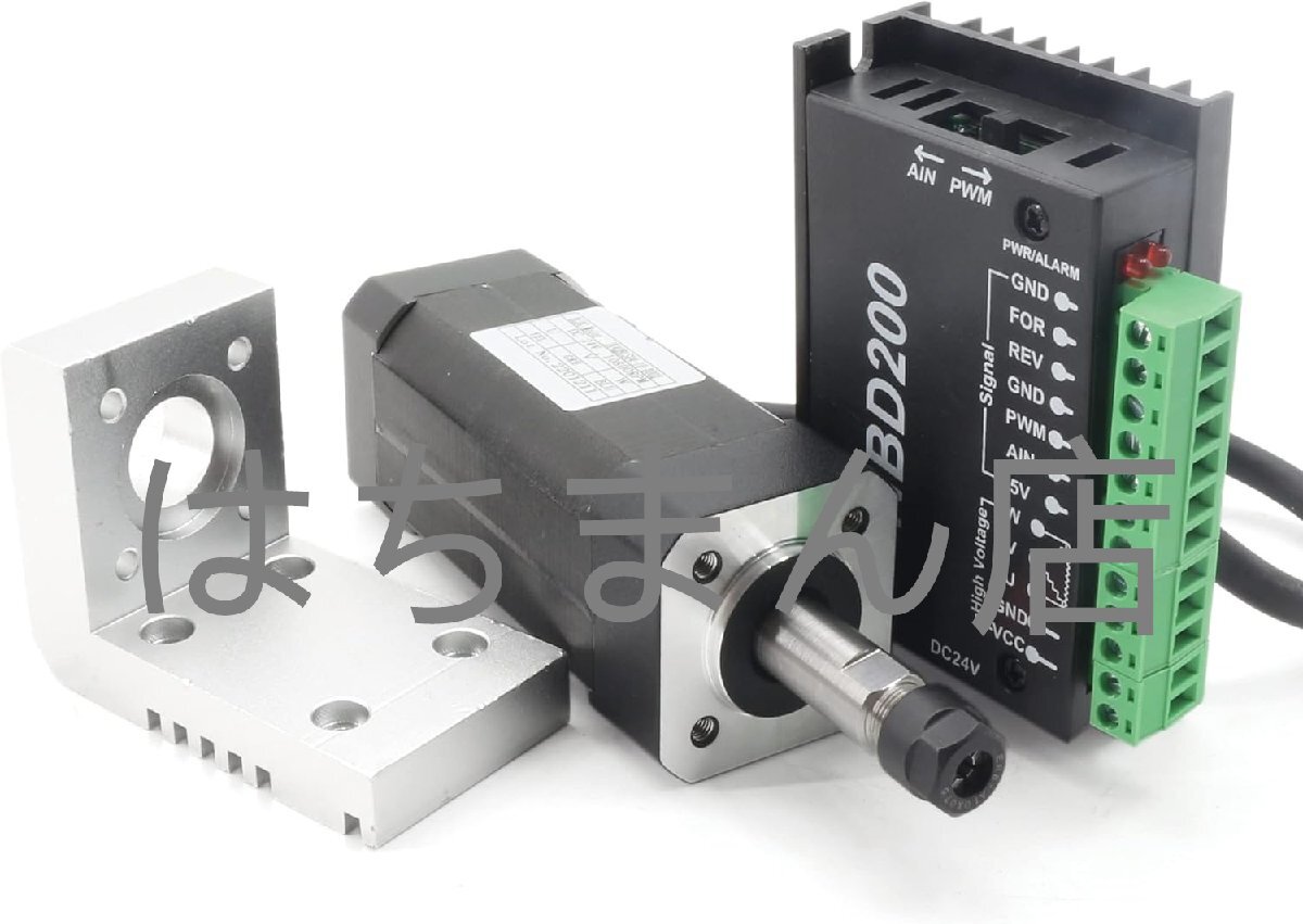 - 104W スクエアミニブラシレスDCスピンドル空冷モーター10800RMP ER8 + NBD200 24Vブラシレスモータードライバー + モーターククランプ冶具