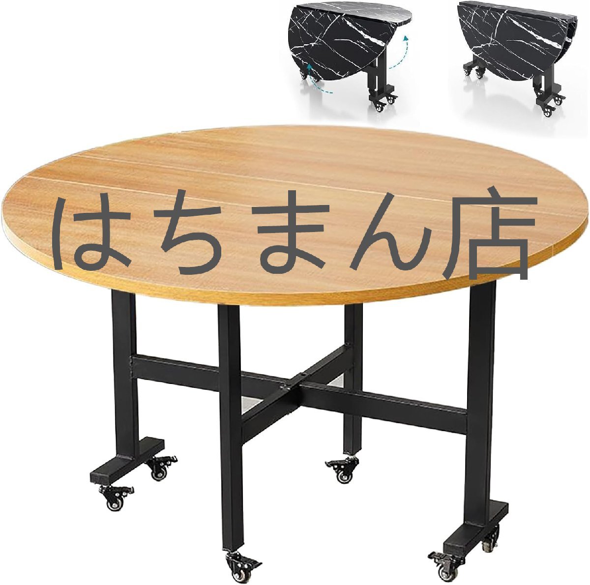 - ダイニングテーブル 折り畳み 丸 食卓テーブル 4-8人用 100/120cm 折りたたみテーブル キャスター付き 化粧台 100cm 明るい木目