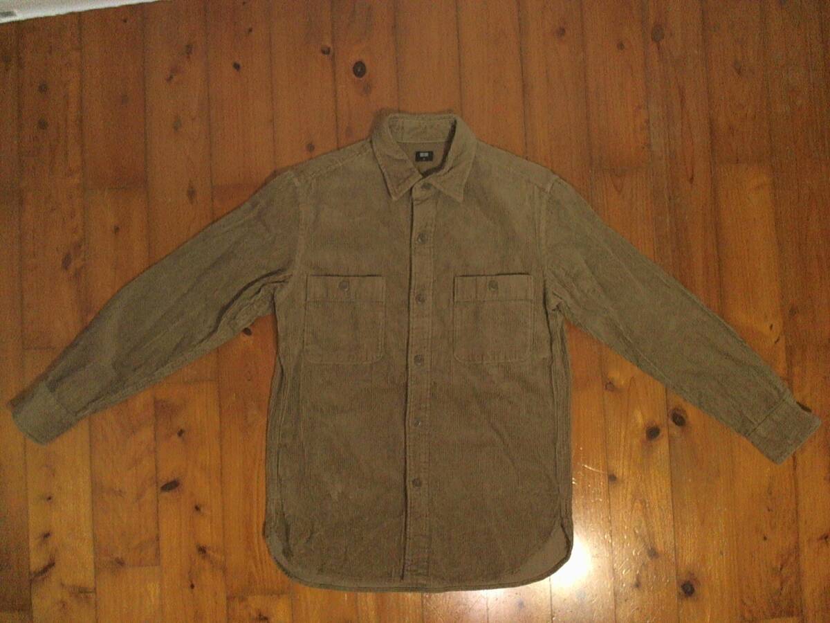 > ☆ユニクロ【UNIQLO】コーデュロイ 長袖ワークシャツ コットンシャツ S ダークブラウン こげ茶系 カーキ