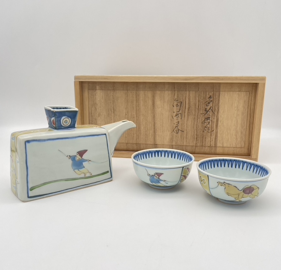 > 宮崎祐輔 色絵駱駝文 角酒器 酒器 肥前磁器 谷鳳窯 染錦 色絵 赤絵 ラクダ シルクロード ぐい呑み 盃 徳利 R6-0109