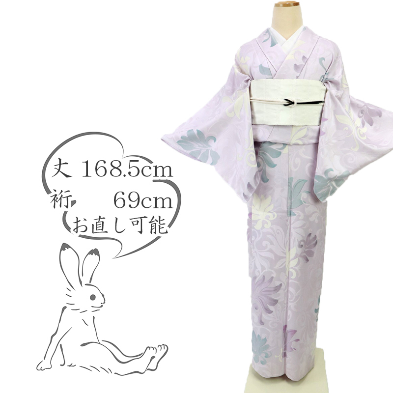- 【小紋】 長尺 単衣 紫ピンク 普段着に 艶やか 唐草葉模様 正絹 着物 KP7-21