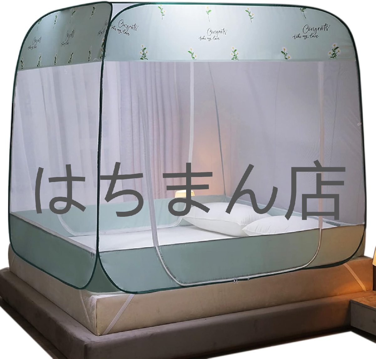 - 蚊帳 ワンタッチ 底付き シングルベッド用 ダブルベッド 3ドア設計 かや 蚊帳 ベッド用 畳 大型 キャンプ式 収納袋付-150x195x160cm-green