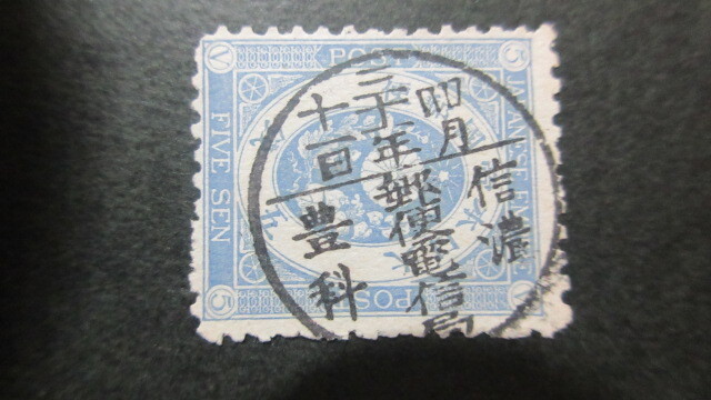 - 【小型丸一縦書印】小判5銭 31.4.11/信濃/郵便電信局/豊科