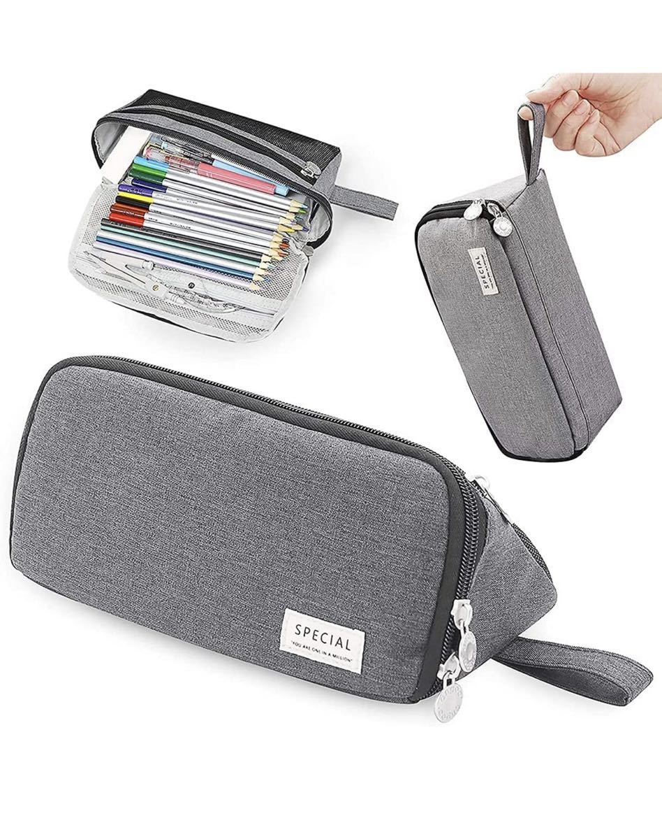 - ペンケース 大容量 おしゃれ 多機能 文房具 収納 バッグ 筆箱 グレーペンケース 文房具 大容量