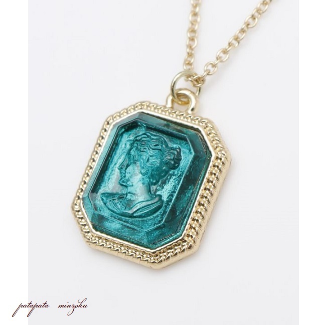 - ドイツ 製 カメオ ガラス スクエア ネックレス グリーン ペンダント パタミン アクセサリー