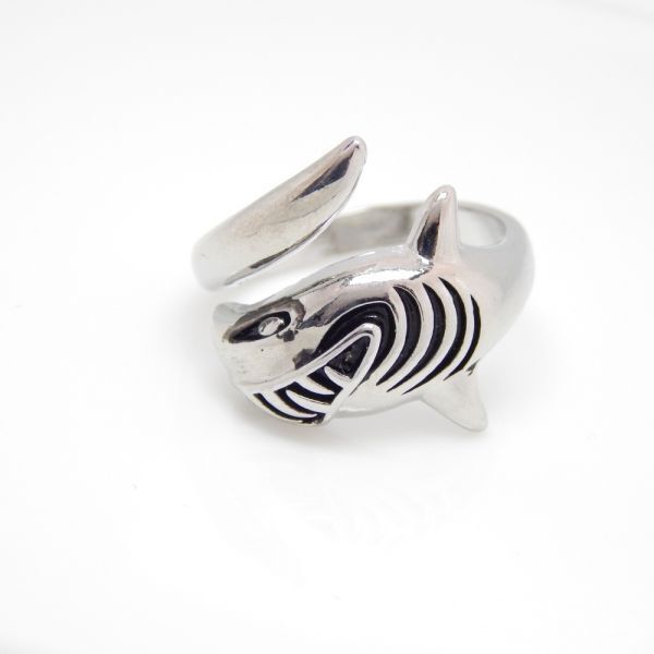 - 即決★送料無料★新品 厳選 ユニークなシャークデザイン サメ フリーサイズリング 指輪 シルバー925 プラチナ仕上 訳有品 XR-A19