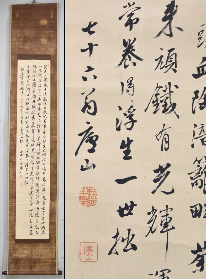 - 《真作》森岡峻山「得歳月延歳月〜」 書家 龍門社 田辺玄々門 大藪清雅の厳父 麻紙 掛軸 掛け軸 9227-0710