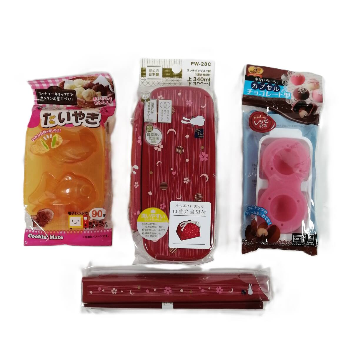 - 【新品・未開封】お弁当・手作りキッド4点セット / OSK 和柄 巾着付きお弁当箱 お箸 手作りチョコレート たい焼き (#DADRU)