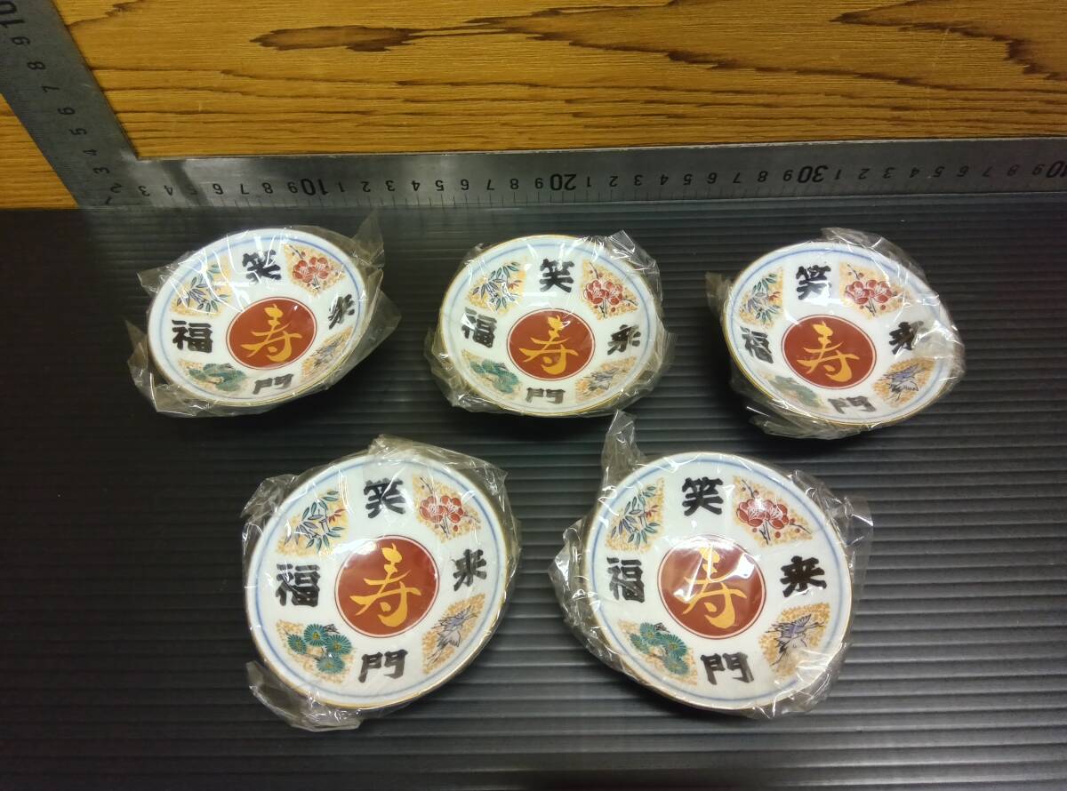 - 24120821 笑門福来 小皿5客セット さかづき 年始 寿 大吉 小皿 ミニ皿 福門 笑門福来 未使用品 縁起物