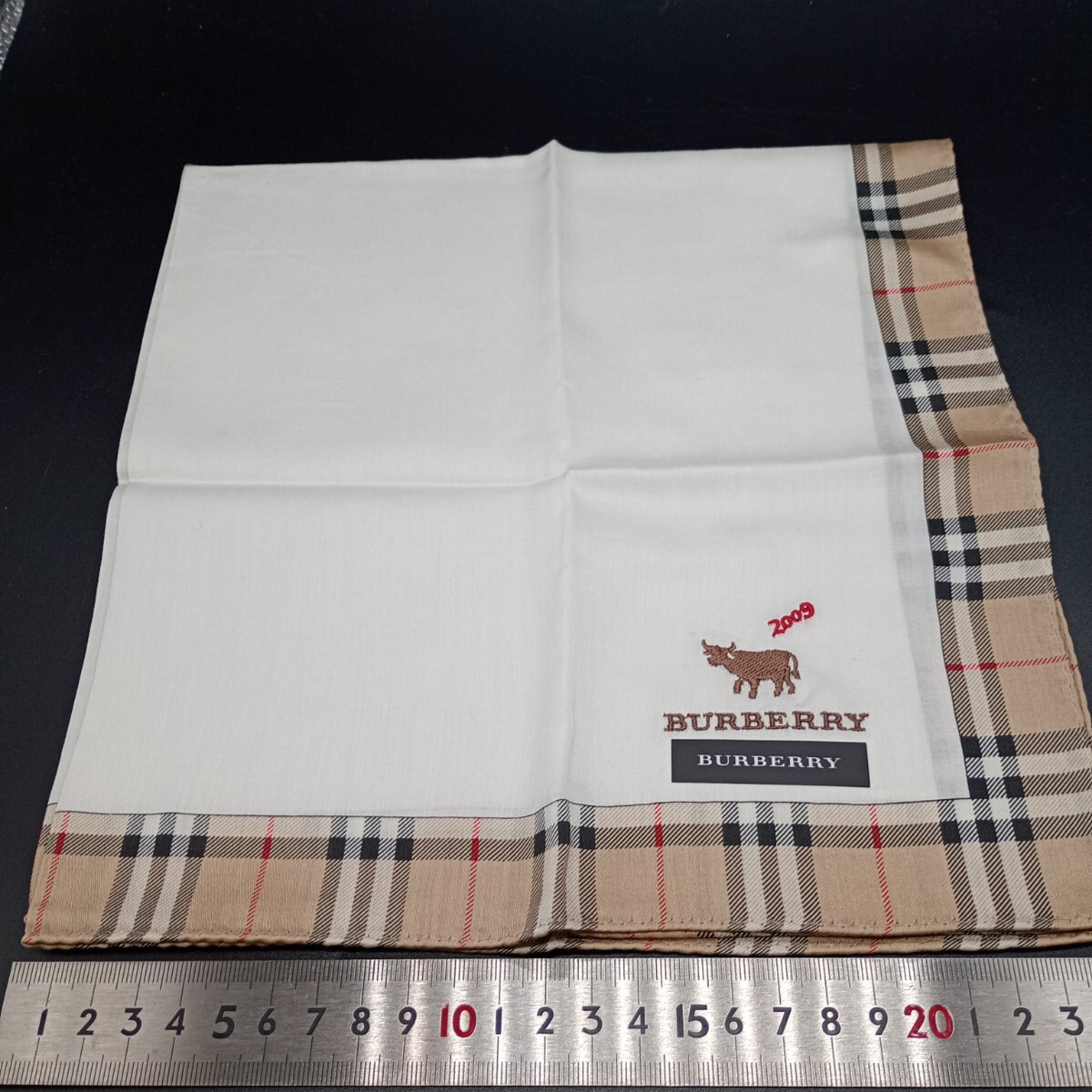 - BURBERRY バーバリー ハンカチ 牛 2009 ロゴ 刺繍 ブラウン ふちチェック no.3008