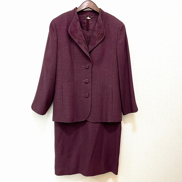> #anc レリアン Leilian ワンピーススーツ 13+ 紫系 セットアップ ツーピース イタリア製生地 刺繍 大きいサイズ レディース [922435]