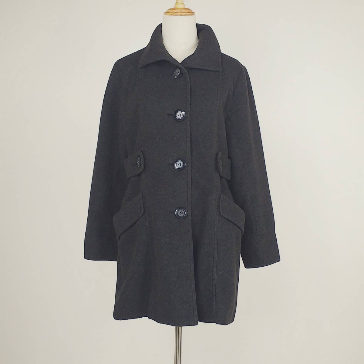 > YZ0464 美品 Aller Bien レディース アウター コート 長袖 サイドポケット 厚手 デザインボタン LL ブラック 黒 無地 秋冬 クリーニング済