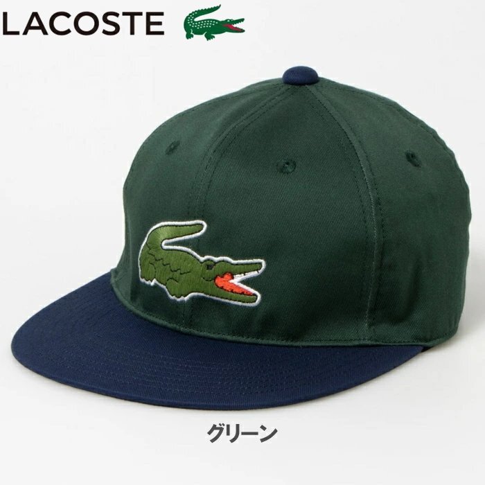 - ★LACOSTE ラコステ ビッグワニ バイカラーキャップ L1276(グリーン)フラットキャップ★送料無料★MADE IN JAPAN★