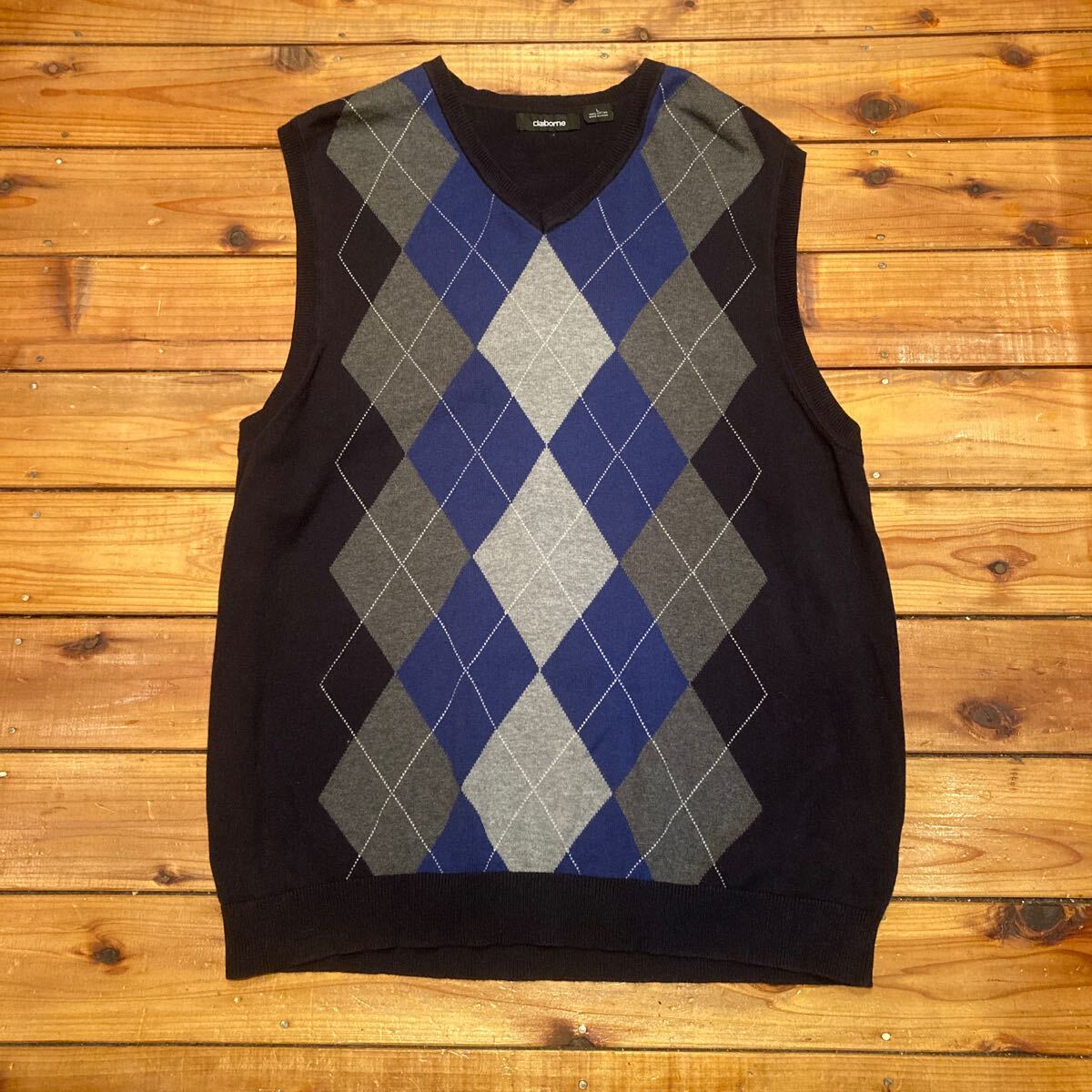 - claiborne ニットベスト ベスト セーター アーガイル柄 ネイビー系 Lサイズ アメリカ古着 USA古着
