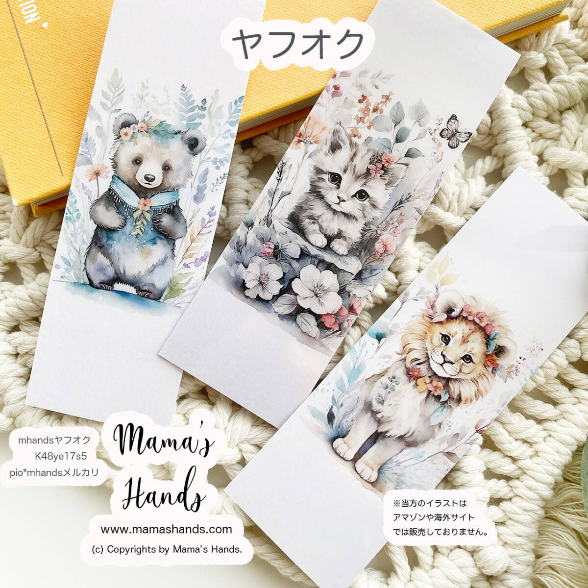 - ★即決★ クマ ライオン ねこ 猫 ネコ しおり 防水 硬い 長持ち 水彩画 読書 動物 イラスト アート 3枚セット
