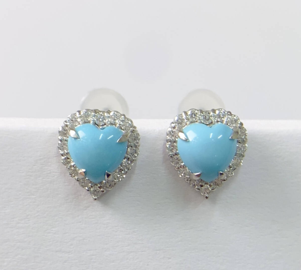 > 新品未使用品 PT900 天然トルコ石0.88ct 0.75ct 天然ダイヤモンド0.14ct 0.14ct ピアス 約2.7g