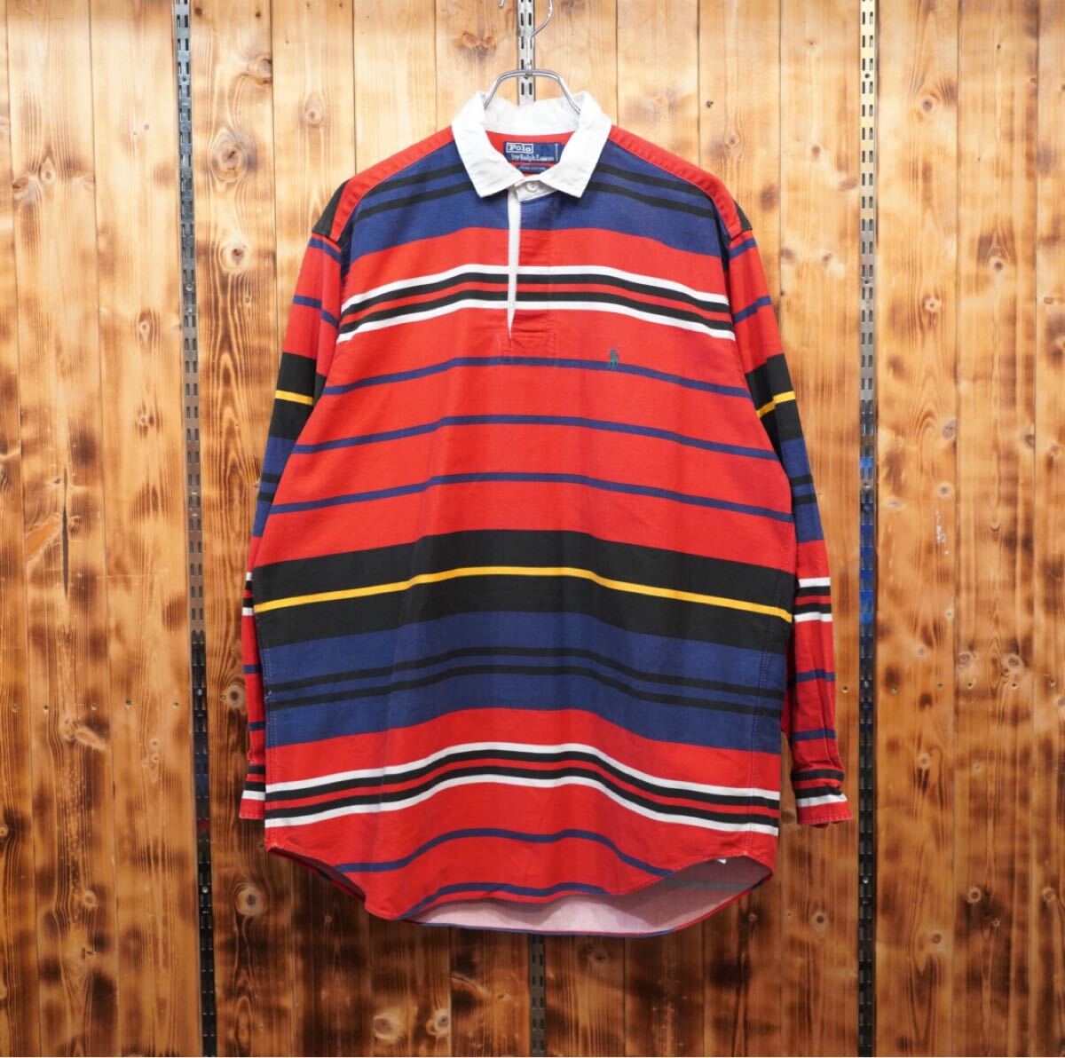 - 90s ralphlauren プルオーバー シャツ L/ラルフローレン ラガーシャツ 赤