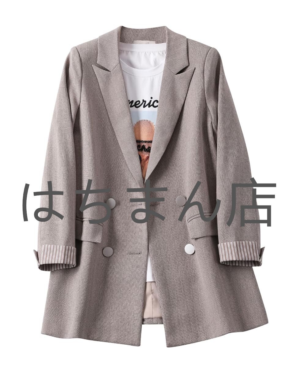 - ダブルジャケット レディース ブレザー テーラードジャケット オーバーサイズ 体型カバー 秋服 春服 通勤 グレー S-2XL