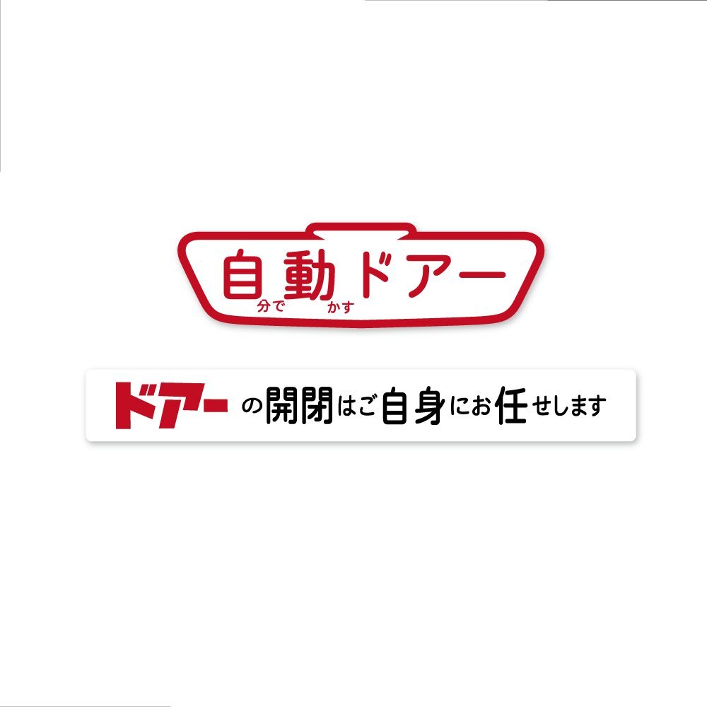- 昭和レトロ 自分で動かすドア 自分で閉めて下さい 2枚セット レッド おもしろステッカー 自動ドア 手動ドア シール