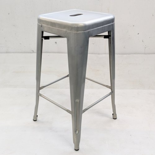 - ★<未使用品>屋内用 テンポスオリジナル GREE スツール 艶有りシルバー H670mm 訳あり〈8622481〉★