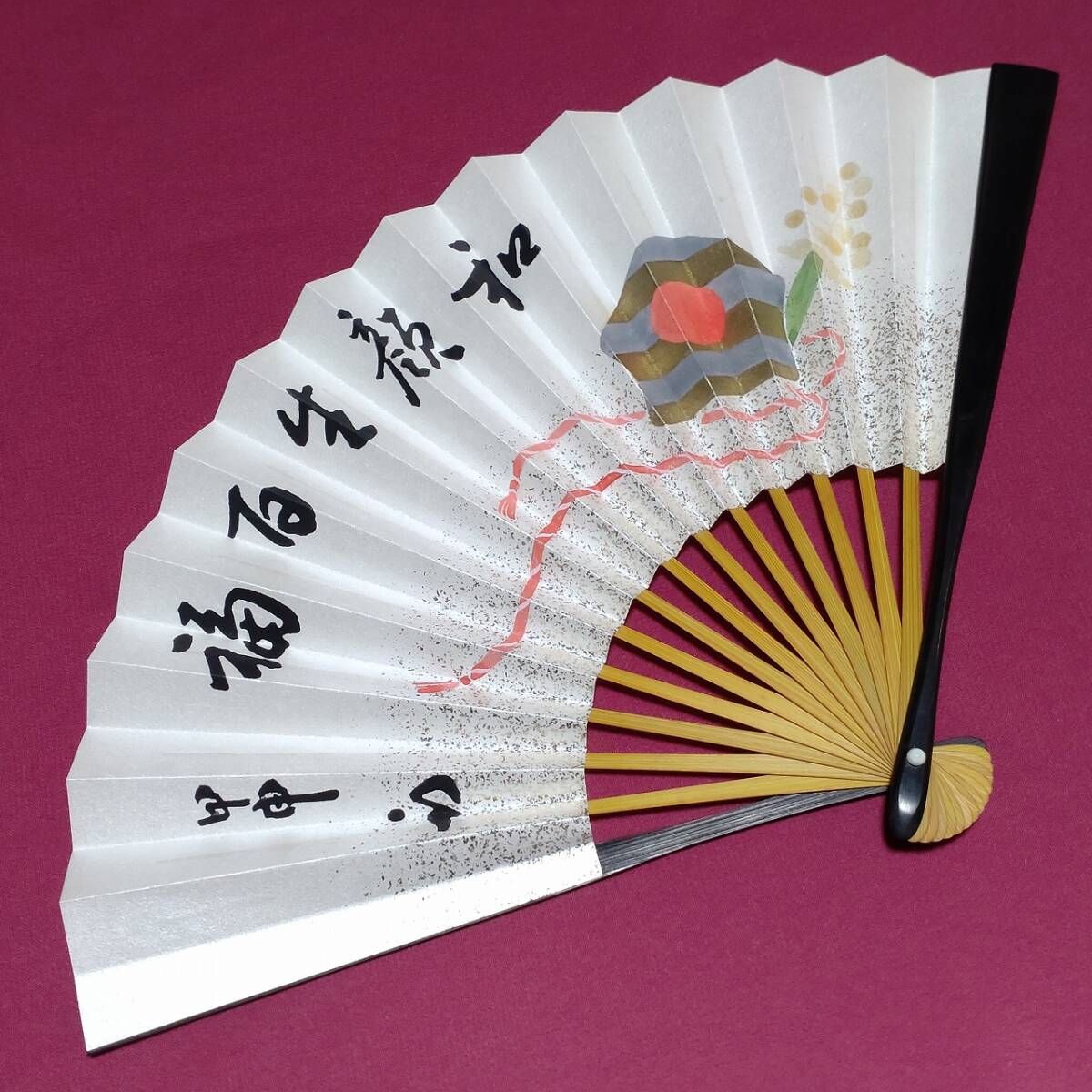 - 紙扇子 飾り扇子 書 和風の絵 全長約19.8cm せんす センス おおぎ 茶道具 和装 小物 未使用保管品 【4787】【r】